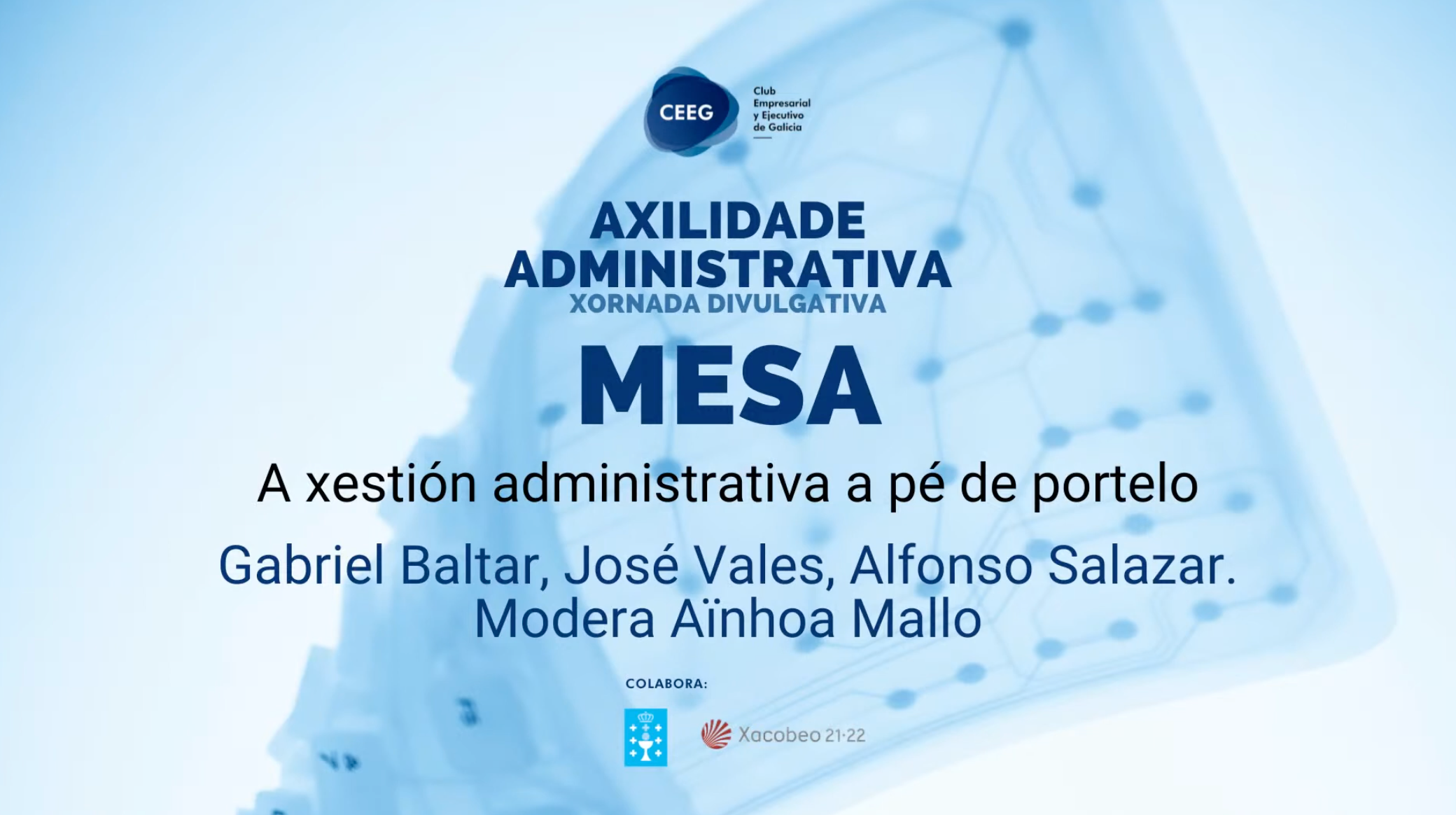El Club Empresarial y Ejecutivo de Galicia celebró ayer la jornada Axilidade Administrativa. Un reto para o impulso da competitividade empresarial, en la que tuvimos el placer de participar. Un evento caracterizado por tener un formato mixto, presencial y streaming, que se pudo ver a través de su canal de YouTube y en el que presentaron ejemplos claros de lo que supone el día a día de las empresas y de despachos ante las gestiones con la Administración.